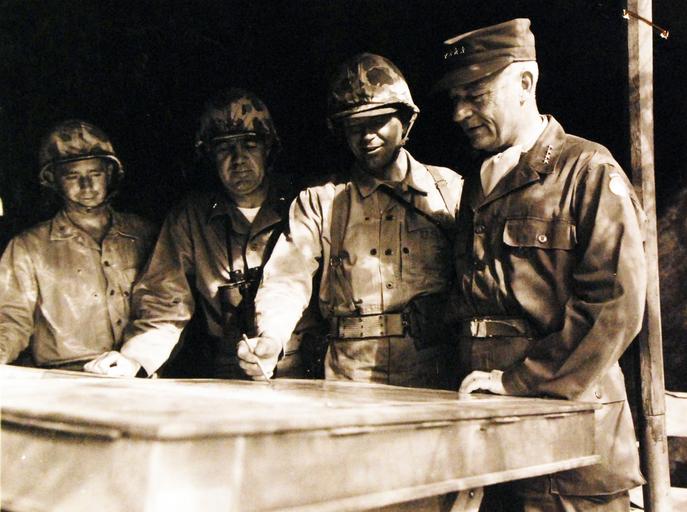 | Keywords: sculpture statue architecture ancient 127-GW-302-178481: Battle for Iwo Jima, February-March 1945. General Hull visits the 123th Marines on Iwo Jima. Colonel Leonard F. Chapmen, Jr., Commanding Officer of the artillery regiment of 3rd Marine Division, shows the position of the big guns to General John E. Hull, Commander, Armed Forces, Far East, during Operation Flag hoist. Lieutenant Colonel Earl J Rowse, S-3, of the 12th Marines and Brigadier General Thomas G. McFarland, Assistant Division Commander locates the guns on a map board for the General. Photographed 1945. U.S. Marine Corps photograph, now in the collections of the National Archives. (2016/02/17). 127-GW-302-178481: Battle for Iwo Jima, February-March 1945. General Hull visits the 123th Marines on Iwo Jima. Colonel Leonard F. Chapmen, Jr., Commanding Officer of the artillery regiment of 3rd Marine Division, shows the position of the big guns to General John E. Hull, Commander, Armed Forces, Far East, during Operation Flag hoist. Lieutenant Colonel Earl J Rowse, S-3, of the 12th Marines and Brigadier General Thomas G. McFarland, Assistant Division Commander locates the guns on a map board for the General. Photographed 1945. U.S. Marine Corps photograph, now in the collections of the National Archives. (2016/02/17). |
