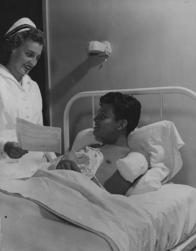 Keywords: monochrome blackandwhite indoor people black and white Joe Bata, Slc., one-armed sailor, receives war bond from Navy nurse in the Naval Hospital, NAS Seattle, Wash. September 4, 1943. [World War II; amputation]. Navy Medicine Historical Files Collection - Facilities - Seattle 12-0228-002 Joe Bata, Slc., one-armed sailor, receives war bond from Navy nurse in the Naval Hospital, NAS Seattle, Wash. September 4, 1943. [World War II; amputation]. Navy Medicine Historical Files Collection - Facilities - Seattle 12-0228-002 |