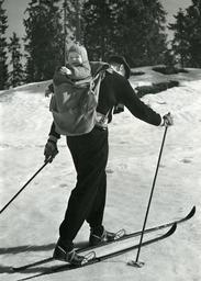 Keywords: backpack skiing winter snow skitur vinter snø ryggsekk bæremeis bæretøy baby outdoor sport blackandwhite black and white Ut på tur, aldri sur! Dyrebar last i sekken til far på skitur. Bildet er fra arkivet etter Landslaget for reiseliv i Norge. Landslaget for Reiselivet i Norge ble stiftet 1903. Det var et offentlig opprettet organ for å fremme reisetrafikken i Norge. Landslaget drev reiselivsreklame i utlandet og i Norge, og utga en rekke brosjyrer og publikasjoner. De hadde et stort bildearkiv som ble brukt i promoteringen av Norge som ferieland. Dette bildet hører til i kategorien ”Skitur, solskinn og barn”. Arkivreferanse: Pa0722_uaa9_13_001 Happy camper! Precious load in dad’s backpack while cross-country skiing. The Norwegian Tourism Association was founded in 1903. It was a public body created to promote travelling in Norway. The association advertised abroad and in Norway, and published a series of brochures and publications. They had a large photo archive that was used in the promotion of Norway as a holiday destination. This photo belongs to the category “Skiing, sunshine and children”. Ut på tur, aldri sur! Dyrebar last i sekken til far på skitur. Bildet er fra arkivet etter Landslaget for reiseliv i Norge. Landslaget for Reiselivet i Norge ble stiftet 1903. Det var et offentlig opprettet organ for å fremme reisetrafikken i Norge. Landslaget drev reiselivsreklame i utlandet og i Norge, og utga en rekke brosjyrer og publikasjoner. De hadde et stort bildearkiv som ble brukt i promoteringen av Norge som ferieland. Dette bildet hører til i kategorien ”Skitur, solskinn og barn”. Arkivreferanse: Pa0722_uaa9_13_001 Happy camper! Precious load in dad’s backpack while cross-country skiing. The Norwegian Tourism Association was founded in 1903. It was a public body created to promote travelling in Norway. The association advertised abroad and in Norway, and published a series of brochures and publications. They had a large photo archive that was used in the promotion of Norway as a holiday destination. This photo belongs to the category “Skiing, sunshine and children”.