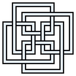 Keywords: 12crossings-4symmetrical-square.svg Decorative knot with twelve crossings depicted with four-fold symmetry This is topologically equivalent to File 12crossings-fourfold-symmetric svg and File Circular-cross-decorative-knot-12crossings svg see http //katlas math toronto edu/wiki/K12a975 but only uses orthogonal straight lines Self-made graphic converted from the following vector PostScript source code <pre> 18 setlinewidth 92 96 1 setrgbcolor/X 5 add 72 mul exch 5 add 72 mul exch def/l X lineto def 7 6 X moveto 2 6 l 2 4 l 5 4 l 5 7 l 1 7 l 1 2 l 3 2 l 3 5 l 0 5 l 0 1 l 5 1 l 5 3 l 2 3 l 2 0 l 6 0 l 6 5 l 4 5 l 4 2 l 7 2 l closepath gsave 0 setgray 36 setlinewidth stroke grestore stroke 92 96 1 setrgbcolor/r 72 mul exch 72 mul exch rlineto def 36 setlinewidth 0 setgray 4 5 6 X moveto 1 0 r stroke 1 4 5 X moveto 0 1 r stroke 1 5 5 X moveto 1 0 r stroke 2 5 4 X moveto 1 0 r stroke 6 1 5 X moveto 0 1 r stroke 1 5 1 X moveto 1 0 r stroke 3 5 3 X moveto 1 0 r stroke 4 5 2 X moveto 1 0 r stroke 2 1 5 X moveto 0 1 r stroke 3 2 5 X moveto 0 1 r stroke 4 3 5 X moveto 0 1 r stroke 5 4 5 X moveto 0 1 r stroke 92 96 1 setrgbcolor 18 setlinewidth 4 48 6 X moveto 1 04 0 r stroke 1 4 48 X moveto 0 1 04 r stroke 1 48 5 X moveto 1 04 0 r stroke 2 48 4 X moveto 1 04 0 r stroke 6 1 48 X moveto 0 1 04 r stroke 1 48 1 X moveto 1 04 0 r stroke 3 48 3 X moveto 1 04 0 r stroke 4 48 2 X moveto 1 04 0 r stroke 2 1 48 X moveto 0 1 04 r stroke 3 2 48 X moveto 0 1 04 r stroke 4 3 48 X moveto 0 1 04 r stroke 5 4 48 X moveto 0 1 04 r stroke showpage EOF</pre> 2010 AnonMoos 12 crossing number knots and links Knots knot theory Decorative knots Images with PostScript source code Knots with 4-fold rotational symmetry Chiral images with rotational symmetry Knots and links on transparent background Outline knots and links |