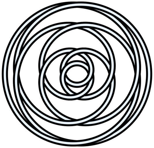 Keywords: 12crossings-rose-limacon-knot.svg Decorative symmetric knot with twelve crossings The curves were generated from the polar coordinates equation r b+sin aθ which is a slight generalization of the Limaçon and Rose/rhodonea curves using parameters a 2/7 and b 1 35 Extends the symmetrical 8-crossing knot File 8crossings-rose-limacon-knot svg Self-made graphic generated from the following vector PostScript source-code <pre> 300 396 translate 45 rotate 85 dup scale 075 setlinewidth 92 96 1 setrgbcolor/z w lineto for stroke def/ecc 1 35 def/w /th exch def th 2 mul 7 div/x exch def x sin ecc add th cos mul x sin ecc add th sin mul def/y dup w moveto 1 add 1 def 0 y 2520 w lineto for closepath gsave 0 setgray 2 setlinewidth stroke grestore stroke 0 setgray 2 setlinewidth 112 y 160 z 360 y 452 z 568 y 604 z 744 y 788 z 992 y 1076 z 1196 y 1232 z 1372 y 1420 z 1620 y 1712 z 1828 y 1864 z 2004 y 2048 z 2252 y 2336 z 2456 y 2492 z 075 setlinewidth 92 96 1 setrgbcolor 111 y 161 z 359 y 453 z 567 y 605 z 743 y 789 z 991 y 1077 z 1195 y 1233 z 1371 y 1421 z 1619 y 1713 z 1827 y 1865 z 2003 y 2049 z 2251 y 2337 z 2455 y 2493 z showpage EOF</pre> 2010 AnonMoos 12 crossing number knots and links Knots knot theory Decorative knots 2-fold rotational symmetry Chiral images with rotational symmetry Images with PostScript source code Knots and links on transparent background Outline knots and links Round graphic ornaments |