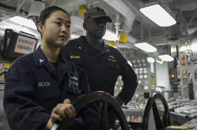 Keywords: 130214-N-DU438-007 Sun Ah Moon mans a throttle.jpg en 130214-N-DU438-007 GULF OF THAILAND Feb 14 2013 ” Machinist ™s Mate 3rd Class Sun Ah Moon originally from Paloalto Calif mans a throttle as Chief Engineer Lt Cmdr Eric Williams originally from Vaiden Miss observes in the ship ™s engineering control room aboard the forward-deployed amphibious assault ship USS Bonhomme Richard LHD 6 to participate in Cobra Gold The Bonhomme Richard Amphibious Ready Group currently on deployment in the U S 7th Fleet area of operations is taking part in Cobra Gold a Thai-U S co-sponsored multinational joint exercise designed to advance regional security by exercising a robust multinational force from nations sharing common goals and security commitments in the Asia-Pacific region U S Navy photo by Mass Communication Specialist 2nd Class Betsy Knapper/Released 2013-02-14 02 55 09 130214-N-DU438-007 Navy MC2 Betsy Knapper U S Navy other versions PD-USGov-Military-Navy Photographs taken on 2013-02-14 Uploaded with UploadWizard Female sailors Military people in 2013 Women at work in the United States People of the United States in 2013 Female black hair Women in the United States Navy February 2013 in the United States African American sailors Men and women at work USS Bonhomme Richard LHD-6 ImageNote 1 185 34 175 210 1000 664 2 MM3 SW Sun-ah Moon USN ImageNoteEnd 1 ImageNote 2 394 9 223 391 1000 664 2 LCDR Eric Williams USN ImageNoteEnd 2 |