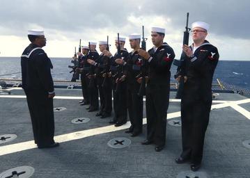 Keywords: 130318-N-XZ031-036 (8577861946).jpg U S Sailors prepare to fire a rifle salute during a burial at sea aboard the amphibious dock landing ship USS Carter Hall LSD 50 in the Atlantic Ocean March 18 2013 The Carter Hall was deployed as part of the Kearsarge Amphibious Ready Group supporting maritime security operations and theater security cooperation efforts in the U S 5th and 6th Fleet areas of responsibility DoD photo by Mass Communication Specialist 3rd Class Chelsea Mandello U S Navy/Released https //www flickr com/photos/39955793 N07/8577861946/ 130318-N-XZ031-036 2013-03-18 08 21 https //www flickr com/people/39955793 N07 U S Department of Defense Current Photos PD-USGov U S Department of Defense Current Photos https //flickr com/photos/39955793 N07/8577861946 2016-09-03 09 14 43 United States Government Work United States Department of Defense |