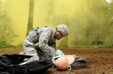 | Keywords: 130409-A-CD114-505 (8651409263).jpg U S Army 1st Lt Jeff Arruiza with the 758th Forward Surgical Team 47th Combat Support Hospital applies a chest covering to a casualty as part of the training lane for the Expert Field Medic Badge at Joint Base Lewis-McChord Wash April 9 2013 The U S Army Expert Field Medical Badge was awarded to Soldiers in medical professions who pass a variety of tests designed to measure proficiency in medical procedures tactical skills and physical conditioning DoD photo by Staff Sgt David Chapman U S Army/Released https //www flickr com/photos/39955793 N07/8651409263/ 130409-A-CD114-505 2013-04-09 11 54 https //www flickr com/people/39955793 N07 U S Department of Defense Current Photos PD-USGov U S Department of Defense Current Photos https //flickr com/photos/39955793 N07/8651409263 2016-09-03 08 56 06 United States Government Work Joint Base Lewis-McChord United States Department of Defense 758th Forward Surgical Team |