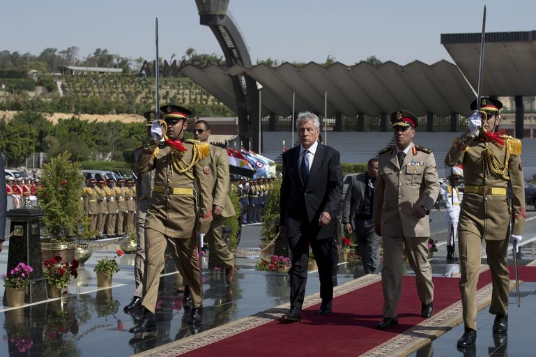 Keywords: 130424-D-BW835-769 (8679866245).jpg U S Secretary of Defense Chuck Hagel center participates in a wreath-laying ceremony at the Tomb of the Unknown Soldier in Cairo April 24 2013 Egypt was Hagel's fourth stop on a six-day trip to the Middle East to meet with defense counterparts DoD photo by Erin A Kirk-Cuomo/Released https //www flickr com/photos/39955793 N07/8679866245/ 130424-D-BW835-769 2013-04-24 12 42 https //www flickr com/people/39955793 N07 U S Department of Defense Current Photos PD-USGov U S Department of Defense Current Photos https //flickr com/photos/39955793 N07/8679866245 2016-09-03 08 52 03 United States Government Work 2013 in Cairo United States Department of Defense