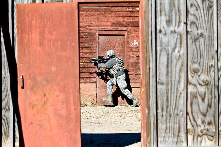 | Keywords: usaf u.s. air force usairforce ang air national guard airnationalguard airforce njang nj new jersey newjersey new jersey national guard newjerseynationalguard national guard nationalguard u.s. air national guard usairnationalguard ac atlantic city atlanticcity 177thfw 177th fighter wing 177thfighterwing 177th airman training exercise fort dix fortdix range mout urban terrain urbanterrain mout village moutvillage security forces securityforces sfs cop m-4 m4 bounding security egg harbor township eggharbortownship usa creative commons royalty free public domain photo photograph digital matt hecht getty reuters ap U.S. Air Force Tech. Sgt. James Eckert runs towards an objective during military operations on urban terrain (MOUT) training at Fort Dix, N.J. on Nov. 19. Eckert is a security forces specialist from the New Jersey Air National Guard's 177th Fighter Wing. (U.S. Air National Guard photo by Tech. Sgt. Matt Hecht/Released) U.S. Air Force Tech. Sgt. James Eckert runs towards an objective during military operations on urban terrain (MOUT) training at Fort Dix, N.J. on Nov. 19. Eckert is a security forces specialist from the New Jersey Air National Guard's 177th Fighter Wing. (U.S. Air National Guard photo by Tech. Sgt. Matt Hecht/Released) |