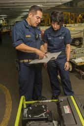 Keywords: 131210-N-CE241-025 Cesar Gomez explains damage control generator maintenance procedures.jpg en 131210-N-CE241-025 GULF OF OMAN Dec 10 2013 Chief Damage Controlman Cesar Gomez of Chicago left explains damage control generator maintenance procedures to Damage Controlman Fireman Angel Lopez of Houston in the hangar bay of the aircraft carrier USS Harry S Truman CVN 75 Harry S Truman flagship for the Harry S Truman Carrier Strike Group is deployed to the U S 5th Fleet area of responsibility conducting maritime security operations supporting theater security cooperation efforts and supporting Operation Enduring Freedom U S Navy photo by Mass Communication Specialist 3rd Class Laura Hoover/Released 2013-12-10 09 41 22 131210-N-CE241-025 Navy MC3 Laura Hoover USN other versions PD-USGov-Military-Navy Uploaded with UploadWizard Female sailors Military people in 2013 Men and women at work People in conversation Photographs of standing people Taken with Nikon D4 ImageNote 1 523 261 780 3091 2872 4314 2 CPO Cesar Gomez USN ImageNoteEnd 1 ImageNote 2 1657 645 860 2353 2872 4314 2 SN Angel Lopez USN ImageNoteEnd 2 |