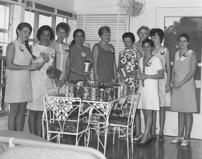 Keywords: christmas blackandwhite monochrome indoor black and white 13-0151 Officers of the Navy Hospital Officers' Wives Club display some of the Christmas packages which the club prepared for patients at U.S.N.H. Guam. The ladies are: from left, Joy Snow, Fran Barnhill, Bunny Fisk, Eleanor Trabaudo, Kay Cowen, Mary Ochs, Peppy Walsh, Ruth Laedtke (extreme background), Angie Lovett, and Sharon Donahoo. 18 December 1969.Photo by HM1 Donald W. Calhoun. 13-0151 Officers of the Navy Hospital Officers' Wives Club display some of the Christmas packages which the club prepared for patients at U.S.N.H. Guam. The ladies are: from left, Joy Snow, Fran Barnhill, Bunny Fisk, Eleanor Trabaudo, Kay Cowen, Mary Ochs, Peppy Walsh, Ruth Laedtke (extreme background), Angie Lovett, and Sharon Donahoo. 18 December 1969.Photo by HM1 Donald W. Calhoun. |