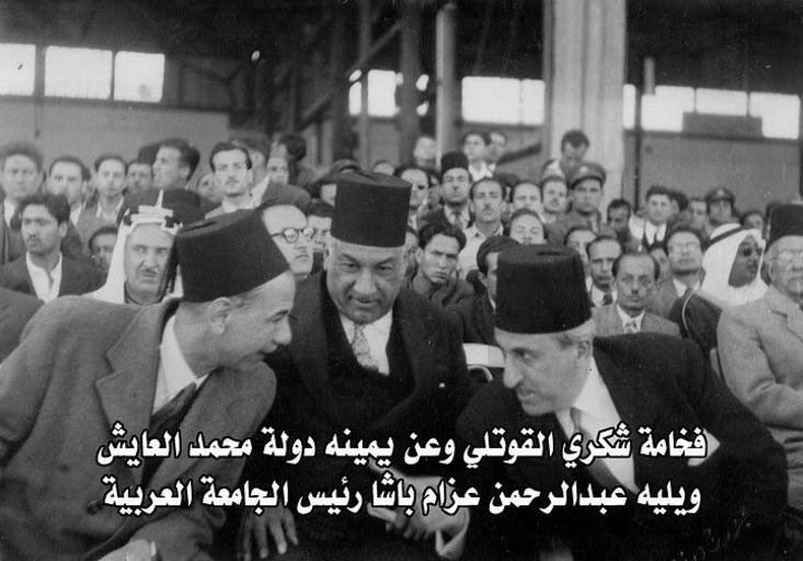 Keywords: 13 محمد بك العايش.jpg ar فخامة الرئيس شكري القوتلي مع أمين عام جامعة الدول العربية عبد الرحمن عزام باشا سنة 1948 من اليمين الرئيس القوتلي - رئيس المجلس النيابي محمد العايش - أمين عام جامعة الدول العربية عبد الرحمن عزام 2013-12-18 23 24 18 www syrianhistory com موقع التاريخ السوري cc-by-sa-3 0 PD-Syria Mohammed Alayiesh Government ministers of Syria Baqqar Tribe |
