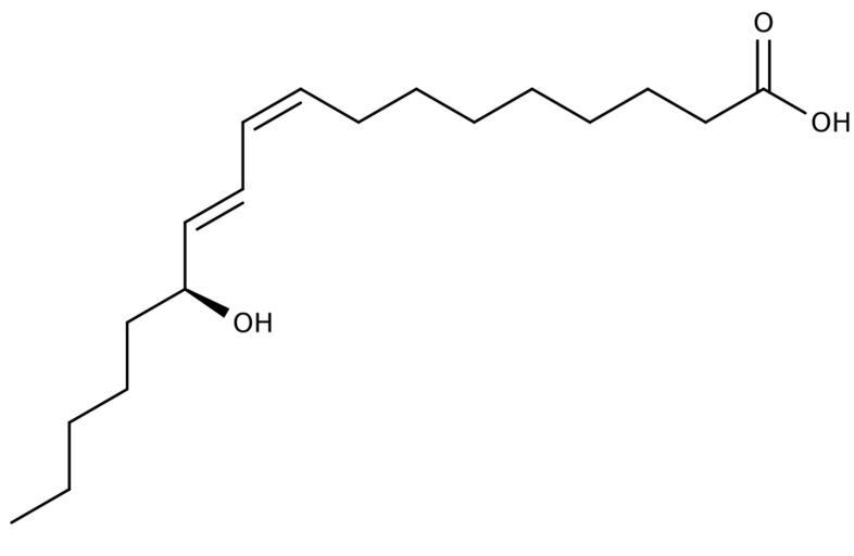 Keywords: 13-HODE.svg Chemical structure of 13-HODE / 13S -hydroxy-9Z 11E-octadecadienoic acid Own 11 50 15 August 2015 UTC Ed Edgar181 Unsaturated fatty acids