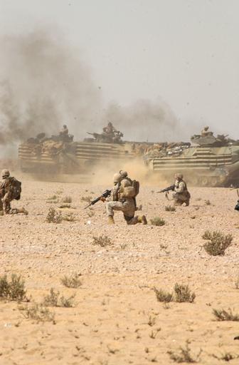 | Keywords: 13th Marine Expeditionary Unit DVIDS10286.jpg en Marines from Battalion Landing Team 2nd Battalion 1st Marines Echo Company attached to the 13th Marine Expeditionary Unit Special Operations Capable assault through targets as the Amphibious Assault Vehicles pull away to provide suppressing fire during a live-fire range during Exercise Bright Star Sept 20 The exercise is designed to enhance the interoperability and cohesiveness of coalition forces through various training scenarios to include amphibious and combined-arms operations The six-week exercise affords U S service members the opportunity to build awareness and relationships with the host nation of Egypt and fellow coalition forces The 13th MEU is currently on a Western Pacific deployment in support of the Global War on Terrorism Official U S Marine Corps Photo by Cpl Chad H Leddy released 2005-09-26 https //www dvidshub net/image/10286 10286 2005-09-26 19 06 PD-USGov 13th Marine Expeditionary Unit Images from DoD uploaded by Fæ 2nd Battalion 1st Marines |