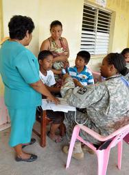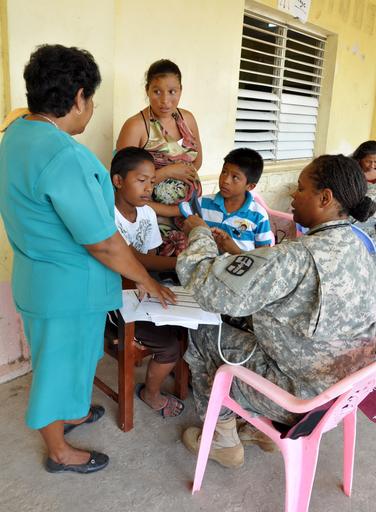 Keywords: 140407-F-EE220-001 (13757896995).jpg Enela Martinez left a Chunox health care worker and U S Army Sgt Jessica Lewis right a medic with the 349th Combat Support Hospital collect information from a family seeking medical care during New Horizons 2014 in Chunox Belize April 7 2014 New Horizons is a U S Southern Command-sponsored annual series of joint humanitarian assistance exercises deploying U S military engineers veterinarians medics and other professions to Central and South American nations for training construction projects and to provide humanitarian and medical services DoD photo by Tech Sgt Kali L Gradishar U S Air Force/Released https //www flickr com/photos/39955793 N07/13757896995/ 140407-F-EE220-001 2014-04-07 10 23 https //www flickr com/people/39955793 N07 U S Department of Defense Current Photos PD-USGov U S Department of Defense Current Photos https //flickr com/photos/39955793 N07/13757896995 2016-09-03 07 16 52 United States Government Work Corozal District Healthcare in Belize New Horizons 2014