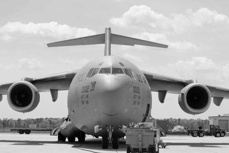| Keywords: usaf u.s. air force usairforce united states air force unitedstatesairforce ac atlantic city atlanticcity air national guard airnationalguard u.s. air national guard usairnationalguard acc air combat command aircombatcommand amc air mobility command airmobilitycommand ang airforce c-17 c17 globemaster iii airlift cargo transport joint base charleston jointbasecharleston sc south carolina southcarolina 177th fighter wing 177thfighterwing 177thfw jersey devils jerseydevils 177th logistics readiness squadron 177thlogisticsreadinesssquadron military airmen airman photo forklift spirit of the air force spiritoftheairforce egg harbor township eggharbortownship new jersey newjersey united states of america unitedstatesofamerica creative commons royalty free public domain photograph digital matt hecht getty reuters ap monochrome blackandwhite aircraft vehicle airplane outdoor black and white A U.S. Air Force C-17 Globemaster III "Spirit of the Air Force" from the 437th Airlift Wing awaits cargo and passengers from the 177th Fighter Wing on May 20, 2014 at Atlantic City International Airport, N.J. Airmen from the 177th Fighter Wing are deploying for a Pacific Air Forces (PACAF) mission. The 437th Airlift Wing is based out of Joint Base Charleston, S.C. (U.S. Air National Guard photo by Tech. Sgt. Matt Hecht/Released) A U.S. Air Force C-17 Globemaster III "Spirit of the Air Force" from the 437th Airlift Wing awaits cargo and passengers from the 177th Fighter Wing on May 20, 2014 at Atlantic City International Airport, N.J. Airmen from the 177th Fighter Wing are deploying for a Pacific Air Forces (PACAF) mission. The 437th Airlift Wing is based out of Joint Base Charleston, S.C. (U.S. Air National Guard photo by Tech. Sgt. Matt Hecht/Released) |