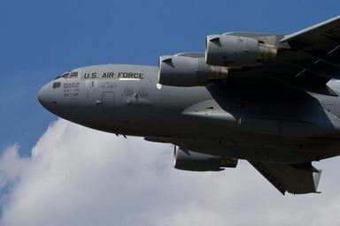MAKE A MEME View Large Image Air Force C-17 Globemaster III "Spirit of the Air Force" from the 437th Airlift Wing carrying Airmen and cargo from the 177th Fighter Wing takes off from Atlantic City International Airport, N.J. on May 20, 2014. Airmen ...