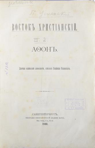 Keywords: Успенський Восток христіанскій 1448.jpg По фи ій Успенський Востокъ х истіанскій Аөонъ Санкт-Пете бу г 1892 Титульний а куш З особистої бібліотеки І Ф анка 1892 Institution Shevchenko Institute of Literature Digital Collection PD-old-70-1923 1790 books from Germany Franko Personal Library Collections of books in libraries in Ukraine Shevchenko Institute of Literature Uploaded with VicuñaUploader