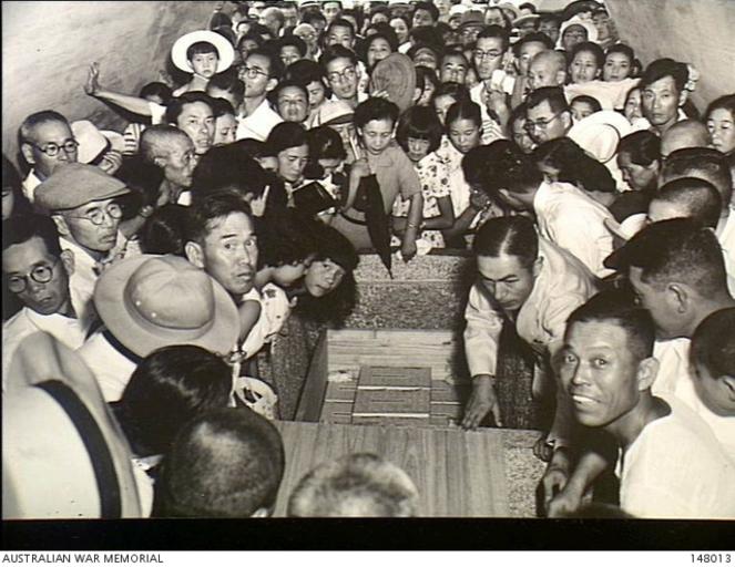 | Keywords: 148013 Interior of the Memorial Monument showing the books containing the names of those who died due to the atomic bombing of Hiroshima.JPG en Interior of the Memorial Monument showing the books containing the names of those who died due to the atomic bombing of Hiroshima Japanese people crowd around to pay their respects to the dead 148013 Holzheimer Claude Rudolph 1952-08-06 Copyright expired - public domain PD-AustraliaGov Hiroshima Peace Memorial Ceremony Hiroshima Cenotaph | ||||