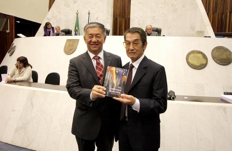 Keywords: Deputado Teruo Kato (PMDB) com o empresário Júlio Hideo Ando, ex-deputado estadual e ex-vereador de Curitiba, no lançamento o livro “Dicas de Campanha Municipal: Vereador e Prefeito”, no Legislativo paranaense. Foto: Nani Gois/Alep (crédito obrigatório) |