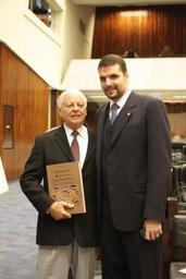 Keywords: Ex-prefeito de Guarapuava e ex-deputado Nivaldo Krüger, e o deputado Pedro Lupion (DEM) no lançamento do livro “A Primeira República das Américas” na Assembleia Legislativa. Foto: Nani Gois/Alep (crédito obrigatório)