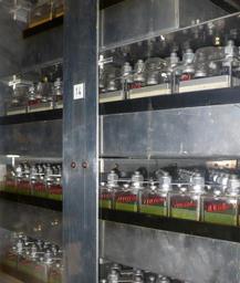 Keywords: 14 Bathyscaph Trieste German Museum Munich.JPG Bathyscaph Trieste German Museum Munich 1 Schalttafel für die Außenbeleuchtung 3 Scheinwerfer Quecksilberdampflampen an der Unterseite des Schwimmkörpers und 2 Glühlampen in Stahlgehäusen am Beobachtungsfenster der Tauchkugel und im Vorzimmer Ateliers de Constructions Mécaniques de Vevey S A Vevey Schweiz 2 Schalttafel zur Betätigung der Ballastschleusen und anderen Einrichtungen Ateliers de Constructions Mécaniques de Vevey S A Vevey Schweiz 3 Schalttafel für die Antriebsmotoren Ateliers de Constructions Mécaniques de Vevey S A Vevey Schweiz 4 Reservematerial 5 Chronometer des Fabrikats wie es auch bei den Ballonflügen in die Stratosphäre 1931 und 1932 von Auguste Piccard benutzt wurde Ateliers de Constructions Mécaniques de Vevey S A Vevey Schweiz 6 Totalisator zur Kontrolle der Ballastabgabe Mit zwei Sekunden-Zählwerken die nur laufen wenn der Strom der zugehörigen Ballastschleuse unterbrochen ist und Ballast abgegeben wird Da der Ballastausfluß jeder Schleuse ziemlich genau 10 kg je Sekunde beträgt kann man sofort erkennen wie viel Ballast verbraucht worden ist Langines Compagnie des Mantres Longines Francillon S A St Imier Schweiz 7 Manometer die zur Ermittlung der Tauchtiefe den Wasserdruck messen Haenni Jegenstorf Schweiz 8 Hochdruckventil 1200 kp/qcm Maschinenfabrik Burckhardt Aktiengesellschaft Basel Schweiz 9 Wasserdichter und explosionsgeschützter Fernsprechapparat für Batteriebetrieb mit einer Buchse im Schwimmkörper so dass nach dem Auftauchen eine Kabelverbindung mit Begleitfahrzeugen hergestellt und so beim Tauchen bis in geringe Tiefen aufrechterhalten werden kann Società Italiana Telecomunicazioni Siemens s p a Milano Italien 10 Automatische Filmkamera Bolex H 16 Reflex Paillard S A Ste Croix Schweiz 11 Photographische Kamera Exakta Ihagee Kamerawerk A G Dresden 12 Anzeigeinstrument des Nickelwiederstandsthermometers zur Messung der Temperatur des Tragebenzins Bosco Co S p a Torino Italien 13 Pendel zur Bestimmung der Trimmlage 14 Zink-Silber-Akkumulatoren zum Betrieb elektrischer Geräte der Ballastschleusen der Haltemagnete der Antriebsmotoren der Ventilatoren der Scheinwerfer Lampen und Innenbeleuchtung 330 Zellen zu je 1 5 Volt Electrona S A Boudry Schweiz 15 Pressluftflaschen zum Ausblasen des Wassers aus Vorzimmer und Einsteigeschacht AGA A G Pratteln-Zürich-Genf 16 Sauerstoff-Flaschen der Belüftungsanlage um den Sauerstoffgehalt der Atemluft in der Tauchkugel zu erneuern AGA A G Pratteln-Zürich-Genf 17 Natronpatronen Aus den Druckflaschen in einem Injektor strömender Sauerstoff saugt Raumluft durch diese drei Patronen Kohlendioxyd wird absorbiert und die gereinigte Luft gelangt gemischt mit Sauerstoff im Kreislauf in die Kabine zurück Drägerwerk Lübeck 18 Schalttafel Ateliers de Constructions Mécaniques de Vevey S A Vevey Schweiz 19 Unterwassertelefon nach Russel Lewis Laboratorium für Unterwasserschall New London Connecticut USA mit dem auch während des Tauchens eine Sprech- oder Signalverbindung mit dem Begleitschiff aufrechterhalten werden kann Die beim Sprechen auf das Mikrofon auftreffenden Schallwellen werden im Bereich von 300 bis 3000 Hertz in elektrische Schwingungen und nach Verstärkung zur à bertragung im Wasser in Unterschallschwingungen von 8387 bis 11087 Hertz umgewandelt Einseitenband-Modulation mit unterdrücktem Träger Beim Empfang findet der umgekehrte Vorgang statt 20 Echolot 21 Log zum messen der Vertikalgeschwindigkeit 22 Innenbeleuchtung mit 6 kleinen Glühlampen zur Beobachtung der Instrumente Sie beleuchten die weiß gestrichene Decke der Tauchkugel und sind gegen die Besatzung abgeschirmt um Blendwirkung zu vermeiden 23 Traggerüste für die Geräteausstattung Verformungen der Kugel durch Temperaturänderungen werden von Schraubfedern aufgenommen die in Bohrungen am oberen Ende der Stangen sitzen und einen Messingkolben gegen die Kugelwand drücken Ateliers de Constructions Mécaniques de Vevey S A Vevey Schweiz 24 Sitze 25 Fußboden der den Keller abdeckt Im Keller werden Alkalipatronen zur Erneuerung der Atemluft Druckgasflaschen zum Ausblasen des Einsteigschachtes nach einer Tauchfahrt und anderes Reservematerial aufbewahrt 26 Tauchkugel Fried Krupp Essen 27 Einsteigeluke 28 Hauptbeobachtungsfenster 29 Tonbandgerät Kudelski Enregistreur autonomes Nagra Paudex-Lausanne own Reinraum 2010-09-19 Trieste submarine 1953 |