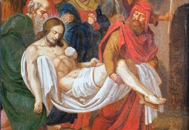 Keywords: 14. postaja križevega pota (Limbarska gora).jpg author middle other date century 19 oil canvas Cerkev sv Valentina Limbarska gora http //www limbarskagora com/Home/razna-vsebina/konserviranje---restavriranje-slik-krievega-pota-v-cerkvi-sv-valentina-na-limbarski-gori PD-art-100 Paintings by unknown painters in Slovenia 19th-century oil on canvas paintings in Slovenia 19th-century religious paintings in Slovenia Stations of the Cross in Slovenia 19th-century paintings of the Passion of Christ Interior of St Valentine's Church Limbarska Gora Station 14 Jesus is laid in the tomb and covered in incense |