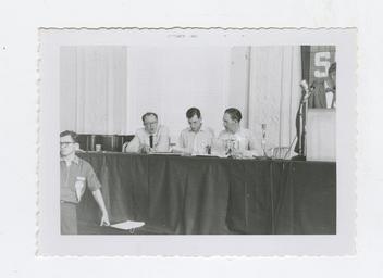 Keywords: 14th world science fiction convention 14thworldsciencefictionconvention wsfs world science fiction society worldsciencefictionsociety science fiction sciencefiction new york city newyorkcity 1956 worldcon blackandwhite black and white L to R: Anthony Boucher with; unidentified man, center; unidentified man, right. Collection of photographic snapshots from the 14th World Science Fiction Convention, also known as NyCon II or NEWYORCON, held August 31–September 3, 1956, at the Biltmore Hotel in New York, New York, USA. The chairman was David A. Kyle. The Guest of Honor was Arthur C. Clarke. The toastmaster was Robert Bloch. The Secretary was Ruth Evelin Kyle NOTE: Please help identify these photos! Please contribute by using comments or emailing: nothinghappenedhere@gmail.com Provenance: The collection of 23 snapshots was purchased from a thrift store in Santa Barbara, California on December 31, 2015. Others who may be featured in the photos: (Please help identify!) Ted White Bob Tucker (Wilson Tucker) Boyd Raeburn Jean & Andy Young Dick Eney Ron Ellik Larry Stark Richalex Kirs Robert Silverberg Damon Knight Willy Ley Frank Kelly Freas Murray Leinster Robert A. Heinlein Robert Bloch L to R: Anthony Boucher with; unidentified man, center; unidentified man, right. Collection of photographic snapshots from the 14th World Science Fiction Convention, also known as NyCon II or NEWYORCON, held August 31–September 3, 1956, at the Biltmore Hotel in New York, New York, USA. The chairman was David A. Kyle. The Guest of Honor was Arthur C. Clarke. The toastmaster was Robert Bloch. The Secretary was Ruth Evelin Kyle NOTE: Please help identify these photos! Please contribute by using comments or emailing: nothinghappenedhere@gmail.com Provenance: The collection of 23 snapshots was purchased from a thrift store in Santa Barbara, California on December 31, 2015. Others who may be featured in the photos: (Please help identify!) Ted White Bob Tucker (Wilson Tucker) Boyd Raeburn Jean & Andy Young Dick Eney Ron Ellik Larry Stark Richalex Kirs Robert Silverberg Damon Knight Willy Ley Frank Kelly Freas Murray Leinster Robert A. Heinlein Robert Bloch |