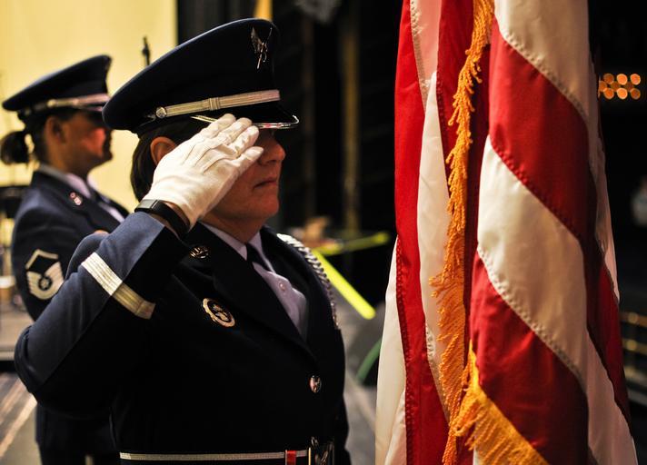 Keywords: air force usaf 182 aw 182nd airlift wing peoria illinois ill ang national guard il angb ngb buehrer eu280 z 566 band midwest ilmea music performance civic center community relations comrel 183 american flag salute post colors color usa U.S. Air Force Chief Master Sgt. Diana L. Braun, a colord guard member with the 183rd Force Support Squadron, salutes after posting the American flag at the Illinois Music Educators Association conference opening night in Peoria, Ill., Jan. 28, 2015. The 566th Air Force Band performed immediately after as part of its mission to preserve national heritage through the power of music at military, recruiting and community relations events. (U.S. Air National Guard photo by Staff Sgt. Lealan Buehrer/Released) U.S. Air Force Chief Master Sgt. Diana L. Braun, a colord guard member with the 183rd Force Support Squadron, salutes after posting the American flag at the Illinois Music Educators Association conference opening night in Peoria, Ill., Jan. 28, 2015. The 566th Air Force Band performed immediately after as part of its mission to preserve national heritage through the power of music at military, recruiting and community relations events. (U.S. Air National Guard photo by Staff Sgt. Lealan Buehrer/Released) |