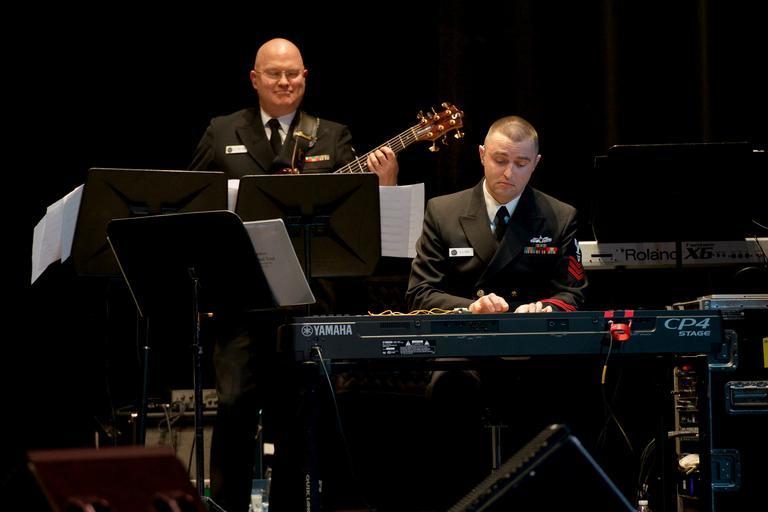 | Keywords: groupshot people indoor music concert performer musician stringed instrument piano HENDERSON, N.C. (Feb. 20, 2015) Master Chief Musician Randy Mattson, left, of Marshall, Minn., and Musician 1st Class (SW) Justin Cody, of Sauk City, Wis., perform during a Navy Band Sea Chanters performance at the Vance-Granville Community College Civic Center in Henderson, N.C. The U.S. Navy Band Sea Chanters chorus is on a 19-city tour of the Southeast U.S. (U.S. Navy photo by Chief Musician Adam Grimm/Released) HENDERSON, N.C. (Feb. 20, 2015) Master Chief Musician Randy Mattson, left, of Marshall, Minn., and Musician 1st Class (SW) Justin Cody, of Sauk City, Wis., perform during a Navy Band Sea Chanters performance at the Vance-Granville Community College Civic Center in Henderson, N.C. The U.S. Navy Band Sea Chanters chorus is on a 19-city tour of the Southeast U.S. (U.S. Navy photo by Chief Musician Adam Grimm/Released) |