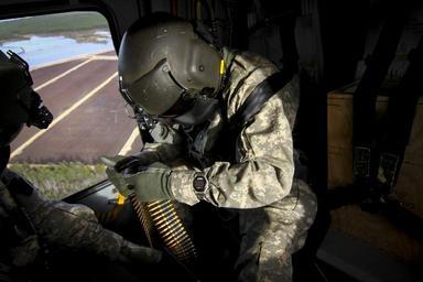 MAKE A MEME View Large Image New Jersey Army National Guard UH-60 Black Hawk helicopter crew chief from the 1-150 Assault Helicopter Battalion reloads cannisters with 7.62mm ammunition over Warren Grove Gunnery Range N.J., April 16, 2015. (U.S. Air National Guard photo ...