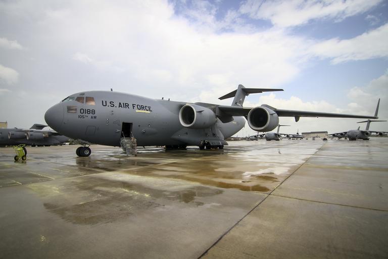 | Keywords: usa u.s. army usarmy usaf u.s. air force usairforce ang air national guard airnationalguard air mobility command airmobilitycommand joint base mcguire-dix-lakehurst jointbasemcguiredixlakehurst joint base mdl jointbasemdl aviation airplane cargo c-17 c17 globemaster 50th ibct 50thibct new jersey army national guard newjerseyarmynationalguard new jersey newjersey national guard nationalguard n.j. nj public domain royalty free getty reuters ap public domain publicdomain royalty free royaltyfree military aircraft photo photograph combat iraq afghanistan war operation enduring freedom operationenduringfreedom operation iraqi freedom operationiraqifreedom f-16 f16 fighting falcon fightingfalcon strike eagle strikeeagle sunrise sunset air force one airforceone red flag alaska redflagalaska green flag east combat eastcombat aviation pilot pilots military aviationpilotpilotsmilitary pilot helicopter helo rotary wing fixed wing fixedwing jet fighter plane vehicle outdoor A C-17 Globemaster III from the New York Air National Guard's 105th Airlift Wing sits parked on the flight line on Joint Base McGuire-Dix-Lakehurst, N.J. after a rain storm, May 11, 2015. The New York Air National Guard was assisting the New Jersey National Guard with a deployment exercise. (U.S. Air National Guard photo by Tech. Sgt. Matt Hecht/Released) A C-17 Globemaster III from the New York Air National Guard's 105th Airlift Wing sits parked on the flight line on Joint Base McGuire-Dix-Lakehurst, N.J. after a rain storm, May 11, 2015. The New York Air National Guard was assisting the New Jersey National Guard with a deployment exercise. (U.S. Air National Guard photo by Tech. Sgt. Matt Hecht/Released) |