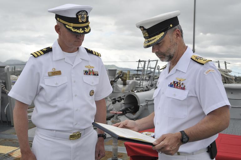 | Keywords: 150526-N-IU636-068 Royal Canadian Navy Rear Adm. William Truelove, commander, Maritime Forces Pacific (MARPAC).jpg PEARL HARBOR May 26 2015 Royal Canadian Navy Rear Adm William Truelove commander Maritime Forces Pacific MARPAC prepares to present Cmdr Todd E Hutchison commanding officer of the guided-missile destroyer USS Michael Murphy DDG 112 with the Canadian Forces ™ Unit Commendation while aboard Michael Murphy at Joint Base Pearl Harbor-Hickam Truelove also presented Rear Adm Rick Williams commander of Navy Region Hawaii and Naval Surface Group Middle Pacific with the Canadian Forces ™ Unit Commendation The commendation was given in appreciation for the recovery efforts of Her Majesty ™s Canadian Ship HMCS Protecteur after suffering an engine fire several hundred miles off the coast of Hawaii during its transit back to Esquimalt British Columbia in February 2014 U S Navy photo by Mass Communication Specialist 2nd Class Johans Chavarro/Released https //www flickr com/photos/compacflt/18210397292/ 150526-N-IU636-068 2015-05-26 00 00 https //www flickr com/people/43397645 N06 U S Pacific Fleet Petty Officer 2nd Class Johans Chavarro/Navy Public Affairs Support Element Detachment Hawaii U S Navy photo PD-USGov-Military-Navy William Truelove Aboard USS Michael Murphy DDG-112 Admirals of Canada |