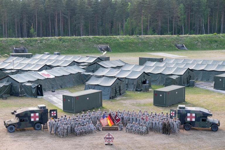 | Keywords: hohenfels 212th csh 212thcsh army combined resolve iv combinedresolveiv germany grafenwoehr health care healthcare military outdoor vehicle The 212th Combat Support Hospital takes a knee to take a group photo. Behind the group is the 32-bed hospital used during this exercise. (U.S. Army Photo by Capt. Jeku Arce, 30th Medical Brigade) The 212th Combat Support Hospital takes a knee to take a group photo. Behind the group is the 32-bed hospital used during this exercise. (U.S. Army Photo by Capt. Jeku Arce, 30th Medical Brigade) |