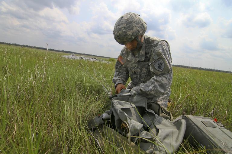 | Keywords: usa usaf u.s. air force usairforce united states air force unitedstatesairforce air national guard airnationalguard air force airforce ang acc u.s. army usarmy reserve 227th air support operations squadron 227thairsupportoperationssquadron 227th asos 227thasos national guard nationalguard nj njang new jersey air national guard newjerseyairnationalguard new jersey national guard newjerseynationalguard airborne jump training maryland army national guard marylandarmynationalguard soldier airman airmen joint training jointtraining tacp jtac army national guard armynationalguard 404th civil affairs battalion 404thcivilaffairsbattalion civil affairs civilaffairs joint base mdl jointbasemdl joint base mcguire-dix-lakehurst jointbasemcguiredixlakehurst ch-47 ch47 chinook helicopter air assault airassault aviation helo chopper military photo combat training combattraining public domain royalty free getty reuters ap outdoor U.S. Army Sgt. First Class Ronald Sanchez from the 404th Civil Affairs Battalion (Airborne) gathers his parachute after an airborne jump at Scorpion Drop Zone on Joint Base McGuire-Dix-Lakehurst, N.J., June 12, 2015. (U.S. Air National Guard photo by Tech. Sgt. Matt Hecht/Released) U.S. Army Sgt. First Class Ronald Sanchez from the 404th Civil Affairs Battalion (Airborne) gathers his parachute after an airborne jump at Scorpion Drop Zone on Joint Base McGuire-Dix-Lakehurst, N.J., June 12, 2015. (U.S. Air National Guard photo by Tech. Sgt. Matt Hecht/Released) |