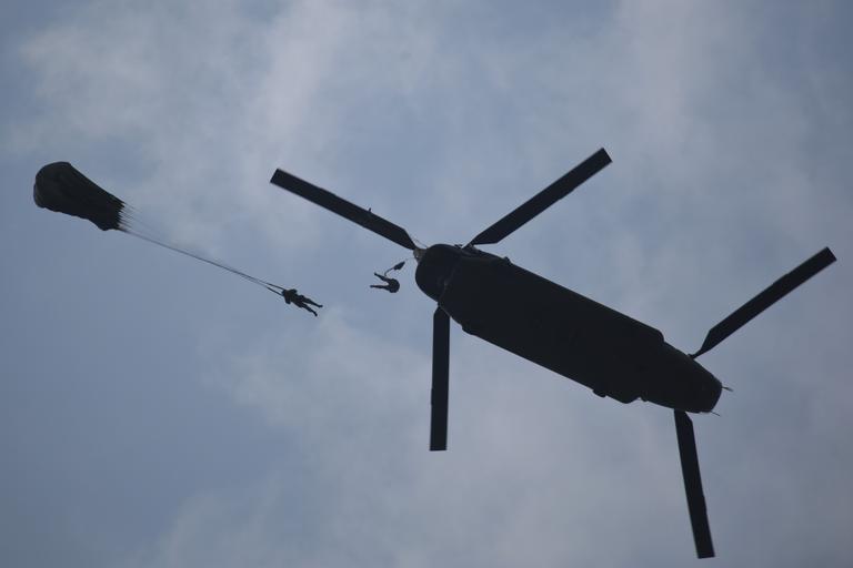 | Keywords: usa usaf u.s. air force usairforce united states air force unitedstatesairforce air national guard airnationalguard air force airforce ang acc u.s. army usarmy reserve 227th air support operations squadron 227thairsupportoperationssquadron 227th asos 227thasos national guard nationalguard nj njang new jersey air national guard newjerseyairnationalguard new jersey national guard newjerseynationalguard airborne jump training maryland army national guard marylandarmynationalguard soldier airman airmen joint training jointtraining tacp jtac army national guard armynationalguard 404th civil affairs battalion 404thcivilaffairsbattalion civil affairs civilaffairs joint base mdl jointbasemdl joint base mcguire-dix-lakehurst jointbasemcguiredixlakehurst ch-47 ch47 chinook helicopter air assault airassault aviation helo chopper military photo combat training combattraining public domain royalty free getty reuters ap outdoor monochrome U.S. Army Reserve Soldiers from the 404th Civil Affairs Battalion (Airborne) and Tactical Air Control Party Airmen from the New Jersey Air National Guard's 227th Air Support Operations Squadron jump from a CH-47 Chinook helicopter from the Maryland Army National Guard at Scorpion Drop Zone on Joint Base McGuire-Dix-Lakehurst, N.J., June 12, 2015. (U.S. Air National Guard photo by Tech. Sgt. Matt Hecht/Released) U.S. Army Reserve Soldiers from the 404th Civil Affairs Battalion (Airborne) and Tactical Air Control Party Airmen from the New Jersey Air National Guard's 227th Air Support Operations Squadron jump from a CH-47 Chinook helicopter from the Maryland Army National Guard at Scorpion Drop Zone on Joint Base McGuire-Dix-Lakehurst, N.J., June 12, 2015. (U.S. Air National Guard photo by Tech. Sgt. Matt Hecht/Released) |