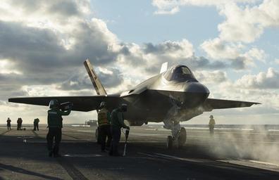 | Keywords: f-35 f35 f-35c f35c navy pax river itf paxriveritf nas patuxent river naspatuxentriver navair vx-23 vx23 pax river paxriver itf cf-03 cf03 cf-05 cf05 uss dwight d. eisenhower ussdwightdeisenhower cvn 69 cvn69 carrier naval aviation navalaviation joint strike fighter jointstrikefighter jsf atlantic ocean atlanticocean airplane outdoor aircraft vehicle ATLANTIC OCEAN (Oct. 4, 2015) Lt. Chris “TJ” Karapostoles prepares to launch from USS Dwight D. Eisenhower during a morning test flight of an F-35C Lightning II. Karapostoles and three other test pilots assigned to the Salty Dogs of Air Test and Evaluation Squadron (VX) 23 are conducting carrier suitability and integration testing of the F-35C carrier variant Joint Strike Fighter. (U.S. Navy photo courtesy Lockheed Martin photo by Andy Wolfe/Released) ATLANTIC OCEAN (Oct. 4, 2015) Lt. Chris “TJ” Karapostoles prepares to launch from USS Dwight D. Eisenhower during a morning test flight of an F-35C Lightning II. Karapostoles and three other test pilots assigned to the Salty Dogs of Air Test and Evaluation Squadron (VX) 23 are conducting carrier suitability and integration testing of the F-35C carrier variant Joint Strike Fighter. (U.S. Navy photo courtesy Lockheed Martin photo by Andy Wolfe/Released) |