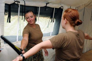 Keywords: 151011-N-SD965-151 ROTA, Spain (Oct. 11, 2015) Steelworker Constructionman Katelyn Kirkpatrick, from Greeneville, South Carolina, assigned to Naval Mobile Construction Battalion (NMCB) 1, searches Personnel Specialist 1st Class Jennifer Johnston, from Killeen, Texas, during an evacuation control center training exercise at Camp Mitchell on Naval Station Rota, Spain, Oct. 11, 2015. U.S. Naval Forces Europe-Africa, headquartered in Naples, Italy, oversees joint and naval operations, often in concert with allied, joint, and interagency partners, in order to advance U.S. national interests, security and stability in Europe and Africa. (U.S. Navy photo by Mass Communication Specialist 1st Class Brannon Deugan/Released) 151011-N-SD965-151 ROTA, Spain (Oct. 11, 2015) Steelworker Constructionman Katelyn Kirkpatrick, from Greeneville, South Carolina, assigned to Naval Mobile Construction Battalion (NMCB) 1, searches Personnel Specialist 1st Class Jennifer Johnston, from Killeen, Texas, during an evacuation control center training exercise at Camp Mitchell on Naval Station Rota, Spain, Oct. 11, 2015. U.S. Naval Forces Europe-Africa, headquartered in Naples, Italy, oversees joint and naval operations, often in concert with allied, joint, and interagency partners, in order to advance U.S. national interests, security and stability in Europe and Africa. (U.S. Navy photo by Mass Communication Specialist 1st Class Brannon Deugan/Released) |