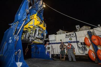 | Keywords: side-scan sonar sidescansonar usns apache msc salvage navsea nstb virginia phoenix el faro elfaro military sealift command militarysealiftcommand civillian mariner navy u.s. navy. military usnavymilitary tugboat bahamas bs 151105-N-RZ218-103 . BAHAMAS (Nov. 5, 2015) Lt. Cmdr. Daniel Neverosky, assigned to Navy Sea Systems Command (NAVSEA), and contractors with Phoenix International Incorporated deploy the Cable Underwater Recovery Vehicle (CURV) aboard the Military Sealift Command fleet ocean tug USNS Apache (T-ATF 172). Apache departed Norfolk, Va., on Oct. 19 to begin searching for wreckage from the missing U.S. flagged merchant vessel El Faro. The ship is equipped with several pieces of underwater search equipment, including a voyage data recorder locator, side-scan sonar and an underwater remote operated vehicle. The Navy's mission will be to first locate the ship and, if possible, to retrieve the voyage data recorder - commonly known as a black box. (U.S. Navy photo by Mass Communication Specialist 2nd Class John Paul Kotara II/Released) 151105-N-RZ218-103 . BAHAMAS (Nov. 5, 2015) Lt. Cmdr. Daniel Neverosky, assigned to Navy Sea Systems Command (NAVSEA), and contractors with Phoenix International Incorporated deploy the Cable Underwater Recovery Vehicle (CURV) aboard the Military Sealift Command fleet ocean tug USNS Apache (T-ATF 172). Apache departed Norfolk, Va., on Oct. 19 to begin searching for wreckage from the missing U.S. flagged merchant vessel El Faro. The ship is equipped with several pieces of underwater search equipment, including a voyage data recorder locator, side-scan sonar and an underwater remote operated vehicle. The Navy's mission will be to first locate the ship and, if possible, to retrieve the voyage data recorder - commonly known as a black box. (U.S. Navy photo by Mass Communication Specialist 2nd Class John Paul Kotara II/Released) |