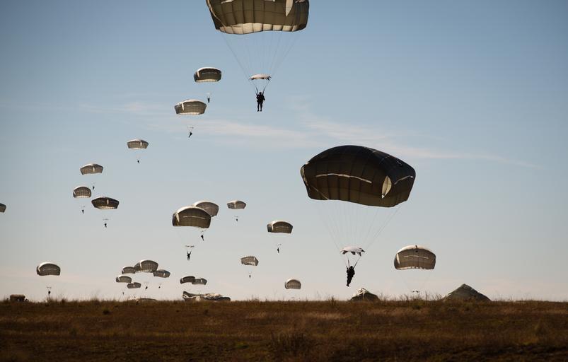 | Keywords: fort bragg fortbragg spjp 82nd xviii airborne corps xviiiairbornecorps united states unitedstates us vehicle aircraft outdoor U.S. Army paratroopers descend during the Saturday Proficiency Jump Program, over Sicily Drop Zone, at Fort Bragg, N.C., Nov. 21, 2015. The program builds proficiency and confidence for airborne operations. (U.S. Army photo by Staff Sgt. Charles Crail) U.S. Army paratroopers descend during the Saturday Proficiency Jump Program, over Sicily Drop Zone, at Fort Bragg, N.C., Nov. 21, 2015. The program builds proficiency and confidence for airborne operations. (U.S. Army photo by Staff Sgt. Charles Crail) |