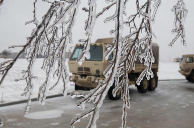 | Keywords: south west blizzard 2015 southwestblizzard2015 lmtv perry oklahoma united states unitedstates us outdoor Ice covered trees, parking lots and the ground while light medium tactical vehicles are staged at the Oklahoma Highway Patrol station at Perry, Oklahoma, Dec. 28. The tactical vehicles were used by Soldiers of the 45th Infantry Brigade Combat Team to assist the Highway Patrol in rescuing and transporting stranded motorists during the severe winter storm affecting much of the southwestern United States. (U.S. Army photo by Sgt. Anthony Jones, 45th Infantry Brigade Combat Team) Ice covered trees, parking lots and the ground while light medium tactical vehicles are staged at the Oklahoma Highway Patrol station at Perry, Oklahoma, Dec. 28. The tactical vehicles were used by Soldiers of the 45th Infantry Brigade Combat Team to assist the Highway Patrol in rescuing and transporting stranded motorists during the severe winter storm affecting much of the southwestern United States. (U.S. Army photo by Sgt. Anthony Jones, 45th Infantry Brigade Combat Team) |