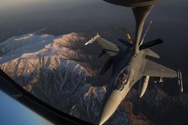 MAKE A MEME View Large Image Air Force KC-135 Stratotanker refuels a U.S. Air Force F-16 Fighting Falcon over Afghanistan in support of the Resolute Support mission, Dec. 29, 2015. (U.S. Air Force photo by Staff Sgt. Corey Hook/Released) A U.S. Air Force KC-135 ...
