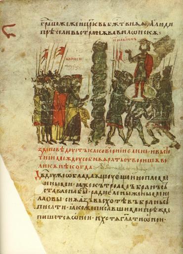 | Keywords: 15-manasses-chronicle.jpg иниатю а 15 от анасиевата летопис 14 век Чудото на ойсей п и скалата и п овъзгласяването на Исус авиев за ца на ев еите Miniature 15 from the Constantine Manasses Chronicle 14 century Moses' miracle to bring forth water from the rock and inauguration of Joshua for King of the Jews Скани ана от книгата иниатю и на анасиевата летопис Иван Дуйчев Издателство Бълга ски художник София 1962 Scanned from book Miniatures from the Manasses Chronicle Ivan Duichev Bulgarski hudojnik Publishing house Sofia 1962 Original 14 century Original Constantine Manasses PD-Art PD-Art-100 Constantine Manasses Chronicle Raising on a shield |