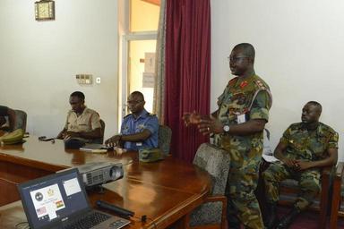 Keywords: indoor 160121-N-UE250-004 ACCRA, Ghana (Jan. 21, 2016) Col. Eric Aggrey-Quashie, Director of Public Relations, gives opening remarks during a Public Affairs Workshop for U.S. Navy and Ghana military forces in Accra, Ghana, Jan. 21, 2016. During the event, conducted as part of Africa Partnership Station, service members from each nation shared ideas and standard operating practices of the public affairs mission. Africa Partnership Station is an international collaborative capacity-building program, with various nations working alongside African partners to enhance maritime security. (U.S. Navy photo by Mass Communication Specialist 2nd Class Corey Hensley/Released) 160121-N-UE250-004 ACCRA, Ghana (Jan. 21, 2016) Col. Eric Aggrey-Quashie, Director of Public Relations, gives opening remarks during a Public Affairs Workshop for U.S. Navy and Ghana military forces in Accra, Ghana, Jan. 21, 2016. During the event, conducted as part of Africa Partnership Station, service members from each nation shared ideas and standard operating practices of the public affairs mission. Africa Partnership Station is an international collaborative capacity-building program, with various nations working alongside African partners to enhance maritime security. (U.S. Navy photo by Mass Communication Specialist 2nd Class Corey Hensley/Released)