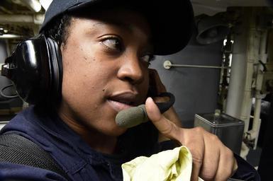 Keywords: navy mediterranean uss carney usscarney ddg 64 ddg64 cne-c6f cnec6f sixth fleet sixthfleet people portrait indoor 160122-N-FP878-215 MEDITERRANEAN SEA (Jan. 22, 2016) Gas Turbine Systems Technician (Mechanical) 2nd Class Shacola Gardner, from Augusta, Georgia, contacts the central control station during an engineering training team scenario aboard USS Carney (DDG 64) Jan. 22, 2016. Carney, an Arleigh Burke-class guided-missile destroyer, forward deployed to Rota, Spain, is conducting a routine patrol in the U. S. 6th Fleet area of operations in support of U.S. national security interests in Europe. (U.S. Navy photo by Mass Communication Specialist 1st Class Theron J. Godbold/Released) 160122-N-FP878-215 MEDITERRANEAN SEA (Jan. 22, 2016) Gas Turbine Systems Technician (Mechanical) 2nd Class Shacola Gardner, from Augusta, Georgia, contacts the central control station during an engineering training team scenario aboard USS Carney (DDG 64) Jan. 22, 2016. Carney, an Arleigh Burke-class guided-missile destroyer, forward deployed to Rota, Spain, is conducting a routine patrol in the U. S. 6th Fleet area of operations in support of U.S. national security interests in Europe. (U.S. Navy photo by Mass Communication Specialist 1st Class Theron J. Godbold/Released) |