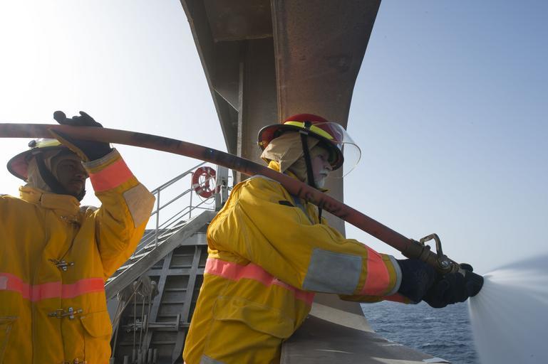 Keywords: africa partnership station; africa partnership station 2016; aps africapartnershipstationafricapartnershipstation2016aps curt hallam curthallam david leader davidleader firefighting firefighting drill firefightingdrill personal protective gear personalprotectivegear usns spearhead (t-epf 1) usnsspearheadtepf1 africa partnership station; africa partnership station 2016; aps16; aps; c6f; usns; spearhead; navy; partnership; military sealift command; u.s. navy; navy; africapartnershipstationafricapartnershipstation2016aps16apsc6fusnsspearheadnavypartnershipmilitarysealiftcommandusnavynavy 160125-N-WV703-042 ATLANTIC OCEAN (Jan. 25, 2016) Able Bodied Seaman Curt Hallam and Able Bodied Seaman David Leader, civil service mariners, man a firefighting hose during a drill aboard USNS Spearhead (T-EPF 1) Jan. 25, 2016. The Military Sealift Command expeditionary fast transport vessel USNS Spearhead is on a scheduled deployment in the U.S. 6th Fleet area of operations to support the international collaborative capacity-building program Africa Partnership Station. (U.S. Navy photo by Mass Communication Specialist 3rd Class Amy M. Ressler/Released) 160125-N-WV703-042 ATLANTIC OCEAN (Jan. 25, 2016) Able Bodied Seaman Curt Hallam and Able Bodied Seaman David Leader, civil service mariners, man a firefighting hose during a drill aboard USNS Spearhead (T-EPF 1) Jan. 25, 2016. The Military Sealift Command expeditionary fast transport vessel USNS Spearhead is on a scheduled deployment in the U.S. 6th Fleet area of operations to support the international collaborative capacity-building program Africa Partnership Station. (U.S. Navy photo by Mass Communication Specialist 3rd Class Amy M. Ressler/Released)