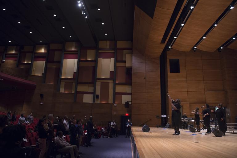 Keywords: select hall indoor auditorium NEW LONDON, Conn. -- The U.S. Coast Guard Academy Chapel Community hosts the 2016 Gospel Explosion Feb. 6, 2016 featuring performances by Krystal Livingston, Levester Jones and The Pentacostal Tabernacle, and the New London Community Choir, among others. The event is designed to share and highlight the diversity of worship styles within the Gospel music genre. U.S. Coast Guard photo by Petty Officer 2nd Class Cory J. Mendenhall. NEW LONDON, Conn. -- The U.S. Coast Guard Academy Chapel Community hosts the 2016 Gospel Explosion Feb. 6, 2016 featuring performances by Krystal Livingston, Levester Jones and The Pentacostal Tabernacle, and the New London Community Choir, among others. The event is designed to share and highlight the diversity of worship styles within the Gospel music genre. U.S. Coast Guard photo by Petty Officer 2nd Class Cory J. Mendenhall. |