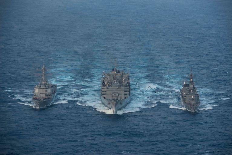 Keywords: uss john c. stennis ussjohncstennis cvn 74 cvn74 uss stockdale ussstockdale philippine sea philippinesea outdoor 160222-N-BR087-358 PHILIPPINE SEA (Feb. 22, 2016) - Japanese Maritime Self-Defense Force Murasame-class destroyer JDS Samidare (DD-106) and the guided-missile destroyer USS Stockdale (DDG 106) receive an advanced biofuel mixture from the fast combat support ship USNS Rainier (T-AOE 7) during a replenishment at sea. Providing a ready force supporting security and stability in the Indo-Asia-Pacific, the John C. Stennis Strike Group is operating as part of the Great Green Fleet on a regularly scheduled 7th Fleet deployment. (U.S. Navy photo by Mass Communication Specialist Seaman Cole C. Pielop/Released) 160222-N-BR087-358 PHILIPPINE SEA (Feb. 22, 2016) - Japanese Maritime Self-Defense Force Murasame-class destroyer JDS Samidare (DD-106) and the guided-missile destroyer USS Stockdale (DDG 106) receive an advanced biofuel mixture from the fast combat support ship USNS Rainier (T-AOE 7) during a replenishment at sea. Providing a ready force supporting security and stability in the Indo-Asia-Pacific, the John C. Stennis Strike Group is operating as part of the Great Green Fleet on a regularly scheduled 7th Fleet deployment. (U.S. Navy photo by Mass Communication Specialist Seaman Cole C. Pielop/Released)