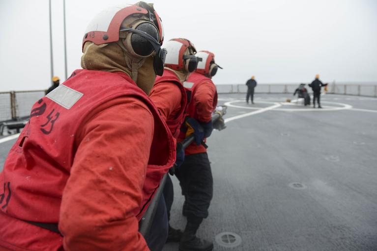 | Keywords: approved outdoor 160305-N-QJ850-062 NORTH SEA (March 5, 2016) Sailors aboard the Whidbey Island-class dock landing ship USS Fort McHenry (LSD 43) man a fire hose during a crash and salvage drill during Exercise Cold Response 2016 (CDR 16). CDR 16 involves maritime, land and air operation training and focuses on naval and amphibious operations transitioning to ground maneuver. The location in central Norway provides an extreme cold-weather environment for the 12 participating countries to collectively develop tactics, techniques and procedures and increase interoperability. (U.S. Navy photo by Mass Communication Specialist 3rd Class Andrew Murray/Released) 160305-N-QJ850-062 NORTH SEA (March 5, 2016) Sailors aboard the Whidbey Island-class dock landing ship USS Fort McHenry (LSD 43) man a fire hose during a crash and salvage drill during Exercise Cold Response 2016 (CDR 16). CDR 16 involves maritime, land and air operation training and focuses on naval and amphibious operations transitioning to ground maneuver. The location in central Norway provides an extreme cold-weather environment for the 12 participating countries to collectively develop tactics, techniques and procedures and increase interoperability. (U.S. Navy photo by Mass Communication Specialist 3rd Class Andrew Murray/Released) |