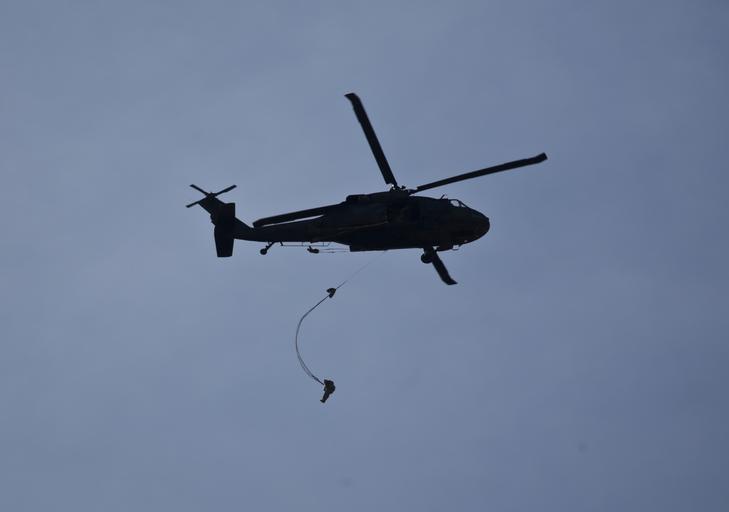 Keywords: u.s. army reserve usarmyreserve paratroopers army soldiers joint base mcguire-dix-lakehurst jointbasemcguiredixlakehurst n.j. nj usa monochrome vehicle aircraft airplane outdoor A U.S. Army Reserve paratrooper jumps from a New Jersey Army National Guard Black Hawk during a helicopter-borne parachute jump at Coyle Drop Zone, Joint Base McGuire-Dix-Lakehurst, N.J., March 12, 2016. (U.S. Air National Guard photo by Tech. Sgt. Matt Hecht/Released) A U.S. Army Reserve paratrooper jumps from a New Jersey Army National Guard Black Hawk during a helicopter-borne parachute jump at Coyle Drop Zone, Joint Base McGuire-Dix-Lakehurst, N.J., March 12, 2016. (U.S. Air National Guard photo by Tech. Sgt. Matt Hecht/Released) |