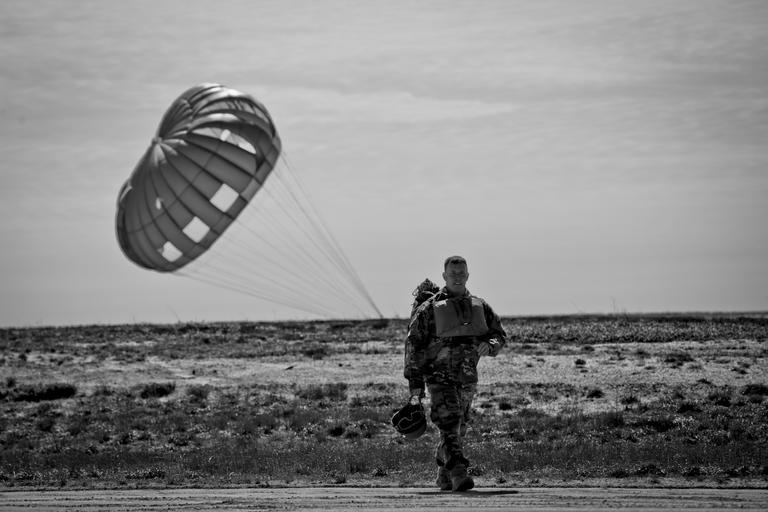 Keywords: u.s. army reserve usarmyreserve army soldiers paratroopers national guard nationalguard airborne joint training jointtraining joint base mcguire-dix-lakehurst jointbasemcguiredixlakehurst n.j. nj usa blackandwhite monochrome outdoor black and white A U.S. Army Reserve paratrooper walks back to a rally point after a successful jump during airborne operations at Coyle Drop Zone, Joint Base McGuire-Dix-Lakehurst, N.J., March 12, 2016. (U.S. Air National Guard photo by Tech. Sgt. Matt Hecht/Released) A U.S. Army Reserve paratrooper walks back to a rally point after a successful jump during airborne operations at Coyle Drop Zone, Joint Base McGuire-Dix-Lakehurst, N.J., March 12, 2016. (U.S. Air National Guard photo by Tech. Sgt. Matt Hecht/Released) |