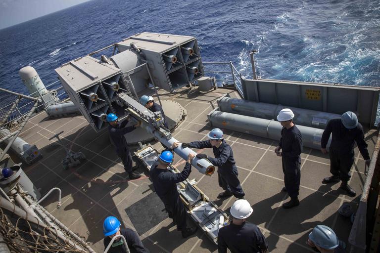 | Keywords: uss kearsarge (lhd 3);arciaga; lhd 3; underway; jebel ali; dubai usskearsargelhd3arciagalhd3underwayjebelalidubai mediterranean sea mediterraneansea outdoor 160409-N-XJ788-039 MEDITERRANEAN SEA (April 9, 2016) Sailors download a RIM-7P NATO Sea Sparrow surface-to-air missile from an Evolved Sea Sparrow Missile (ESSM) system aboard the amphibious assault ship USS Kearsarge (LHD 3). Kearsarge, a Wasp-class amphibious assault ship, deployed as part of the Kearsarge Amphibious Ready Group/26th Marine Expeditionary Unit, is conducting naval operations in the U.S. 6th Fleet area of operations in support of U.S. national security interests in Europe. (U.S. Navy photo by Mass Communication Specialist 2nd Class Travis DiPerna/Released) 160409-N-XJ788-039 MEDITERRANEAN SEA (April 9, 2016) Sailors download a RIM-7P NATO Sea Sparrow surface-to-air missile from an Evolved Sea Sparrow Missile (ESSM) system aboard the amphibious assault ship USS Kearsarge (LHD 3). Kearsarge, a Wasp-class amphibious assault ship, deployed as part of the Kearsarge Amphibious Ready Group/26th Marine Expeditionary Unit, is conducting naval operations in the U.S. 6th Fleet area of operations in support of U.S. national security interests in Europe. (U.S. Navy photo by Mass Communication Specialist 2nd Class Travis DiPerna/Released) |