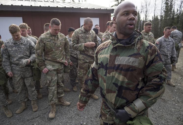 | Keywords: joint base elmendorf-richardson; alaska; paratroopers; airborne; jointbaseelmendorfrichardsonalaskaparatroopersairborne biological radiological and nuclear; training radiologicalandnucleartraining joint base elmendorf-richardson jointbaseelmendorfrichardson alaska usa joint base elmendorf-richardson; alaska; paratroopers; airborne; jber; us army; us army alaska; usarpac; us army pacific; cs; gas; chemical jointbaseelmendorfrichardsonalaskaparatroopersairbornejberusarmyusarmyalaskausarpacusarmypacificcsgaschemical people outdoor Army Staff Sgt. Edward Washington, assigned to Headquarters and Headquarters Troop, 1st Squadron (Airborne), 40th Cavalry Regiment, 4th Brigade Combat Team (Airborne), 25th Infantry Division, U.S. Army Alaska, gives a briefing to fellow paratroopers during chemical, biological, radiological and nuclear defense training on Joint Base Elmendorf-Richardson, Alaska, Wednesday, April 13, 2016. The training culminated with masked Soldiers entering a sealed chamber filled with CS, then removing their protective gear to promote confidence in their equipment. CS, technically known as 0 chlorobenzalmalononitrile, is a solid white powder mixed with a dispersal agent and commonly referred to as tear gas. (U.S. Air Force photo/Justin Connaher) Army Staff Sgt. Edward Washington, assigned to Headquarters and Headquarters Troop, 1st Squadron (Airborne), 40th Cavalry Regiment, 4th Brigade Combat Team (Airborne), 25th Infantry Division, U.S. Army Alaska, gives a briefing to fellow paratroopers during chemical, biological, radiological and nuclear defense training on Joint Base Elmendorf-Richardson, Alaska, Wednesday, April 13, 2016. The training culminated with masked Soldiers entering a sealed chamber filled with CS, then removing their protective gear to promote confidence in their equipment. CS, technically known as 0 chlorobenzalmalononitrile, is a solid white powder mixed with a dispersal agent and commonly referred to as tear gas. (U.S. Air Force photo/Justin Connaher) |